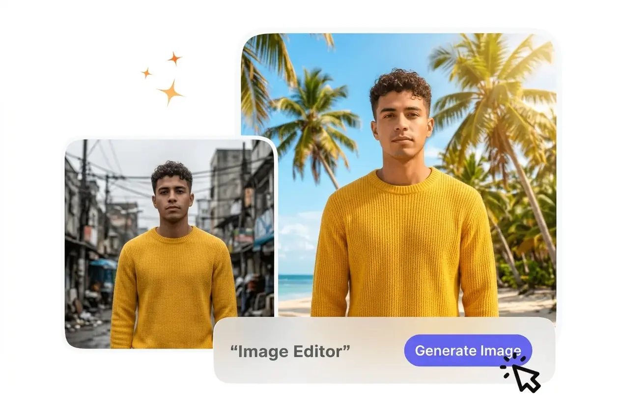 Image Editor는 브라우저에서 직접 사진 스타일을 변경하고 새로운 변형을 생성합니다. 여러 버전을 일괄 생성하고 기획안이 바뀌기 전에 좋지 않은 결과물을 골라내세요.